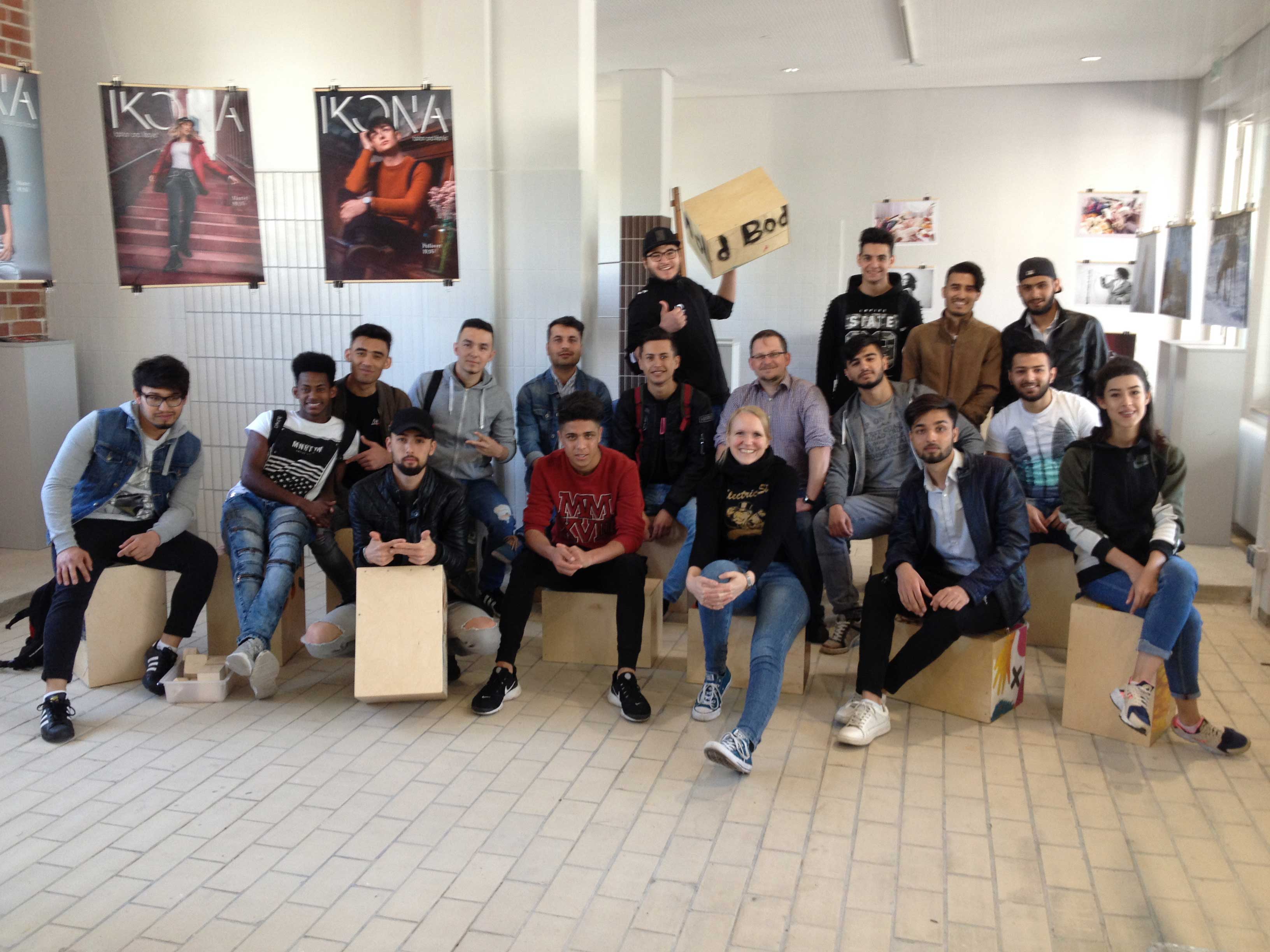 „Heute, um kurz nach acht trafen wir uns in der Schule vor der Galerie und warteten auf den „Musiklehrer“. Als der Lehrer da war, begrüßte er uns und stellte sich vor, weil wir ihn nicht kannten. Er hieß Axel und spielt Cajón in einer Band. Dann zeigte er uns, wie man auf der Cajón trommeln kann. Zuerst brachte er uns ein paar einfache Rhythmen bei, die wir zusammen nach trommelten. Danach übten wir einen Rhythmus sehr genau und trommelten ihn in der Gruppe, während einzelne von uns ein Trommelsolo spielten. Dabei kamen auch die Rasseln in Einsatz.